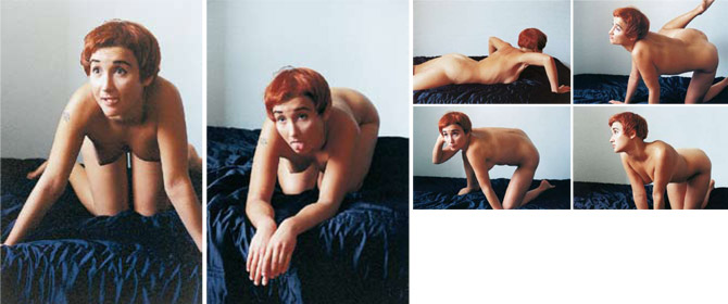 In each picture, the naked woman is seen filling the space of the frame: Scratching herself, panting. Additionally, there are poses which ironically suggest the other transformation processes: The woman “gives her paw,” thus acting like a dog which is, conversely, imitating a human greeting and, indeed, usually on the command and at the whim of its “master.” In another photograph, the female creature lifts her hind leg just like male dogs do while urinating, thus mimicking male territorial behavior. The performance captured in the photograph contains more than a simple performative analogization of woman-bitch, but alongside this becoming animal is also becoming man and becoming human. In so doing, Athila subverts Deleuze and Guattari’s becoming animal concept, which always signifies a becoming minority as well. On the other hand, the female nature of the protagonist, emphasized by her nudity, implies the preliminary stage of becoming woman, mandatory for Deleuze and Guattari, for all becoming processes and reaffirms the cliché of woman’s closeness to nature and, therefore, to animals.