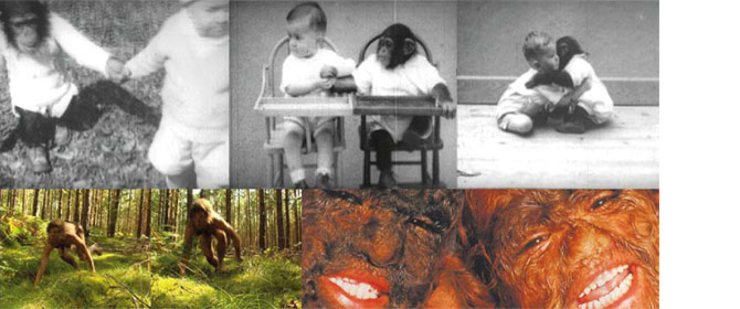 Feral Child 2007, DVD Close the Gap. Vom Schliessen der Lücke zwischen Affe und Mensch [On closing the Gap Between Monkey and Human]. 2009, Installation